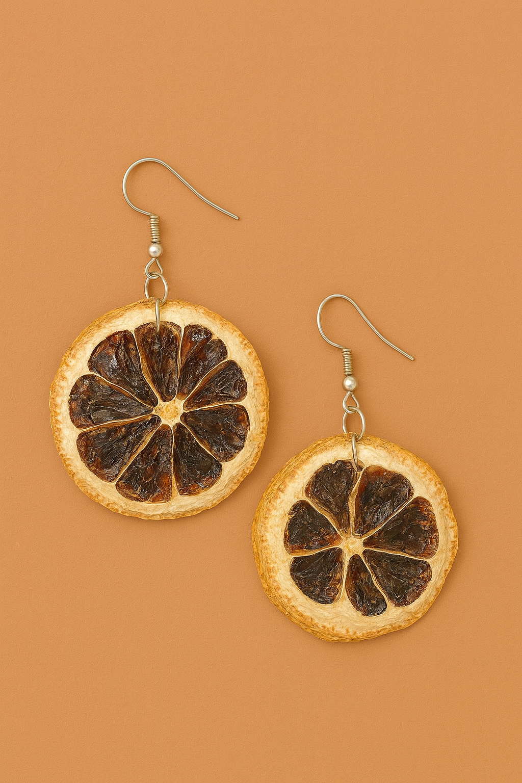 Bold and refreshing, these handcrafted earrings feature natural dried citrus slices for a playful yet earthy statement look. Lightweight and unique, they bring a touch of nature-inspired artistry to any outfit.